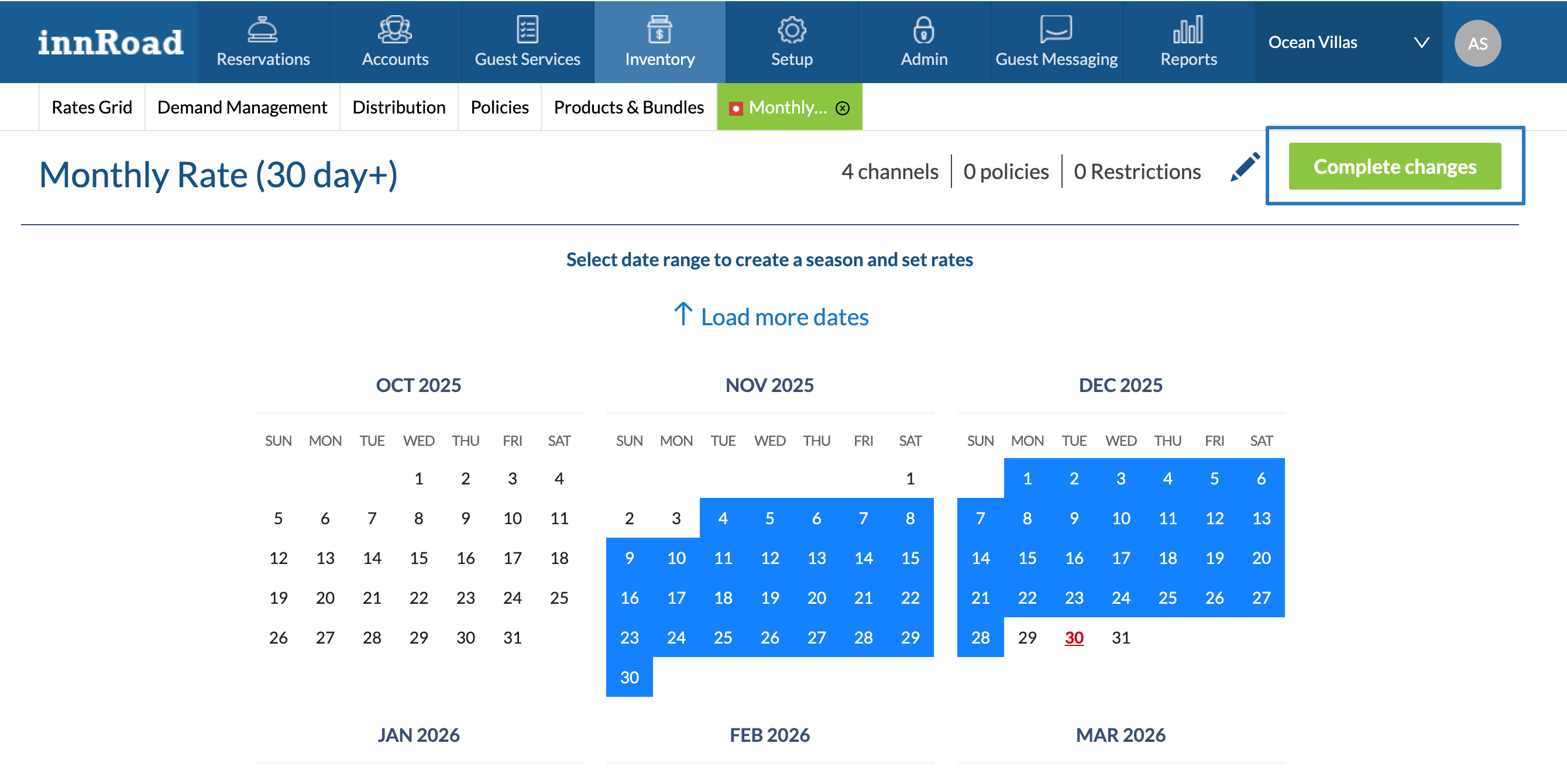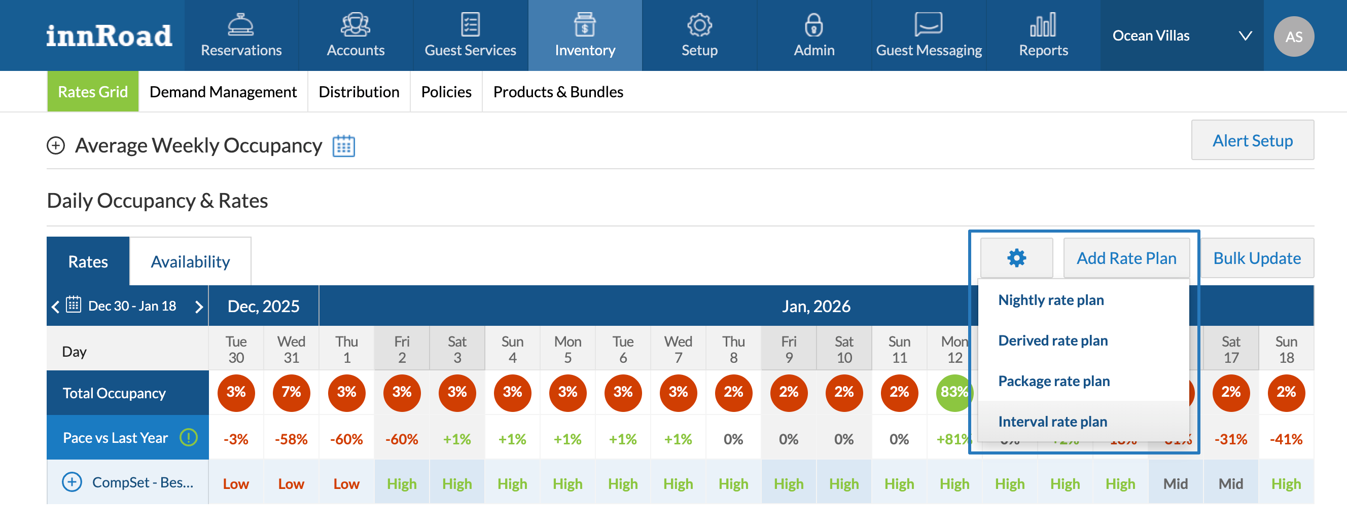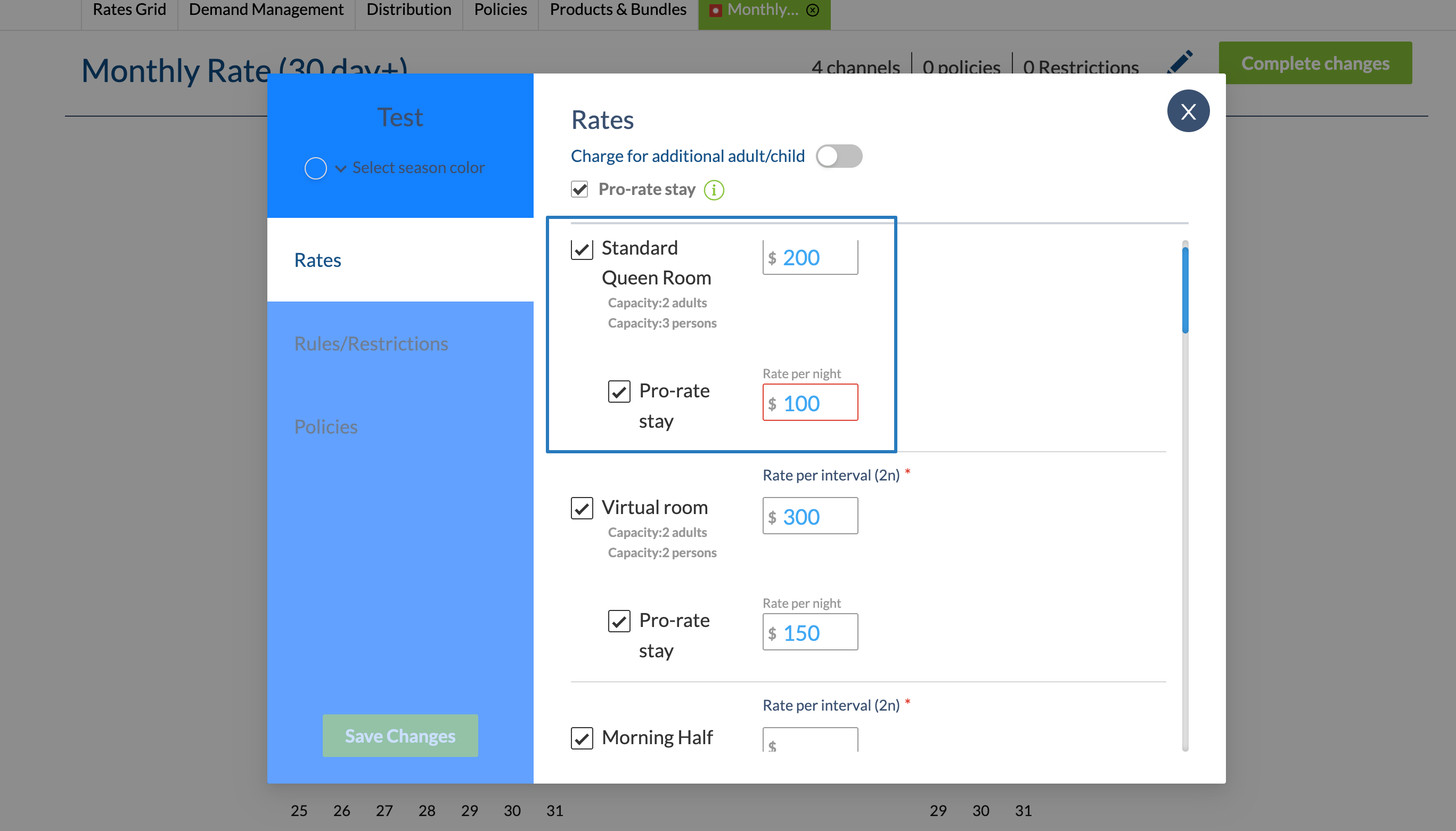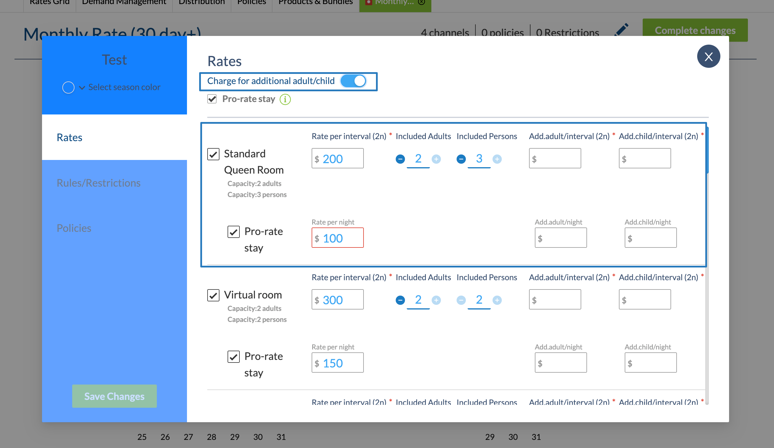 Once you create your Interval Rate Plan, you can customize pricing, booking rules, and policies using date ranges called seasons.