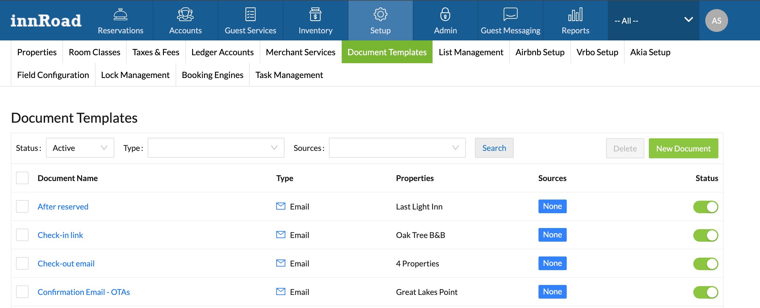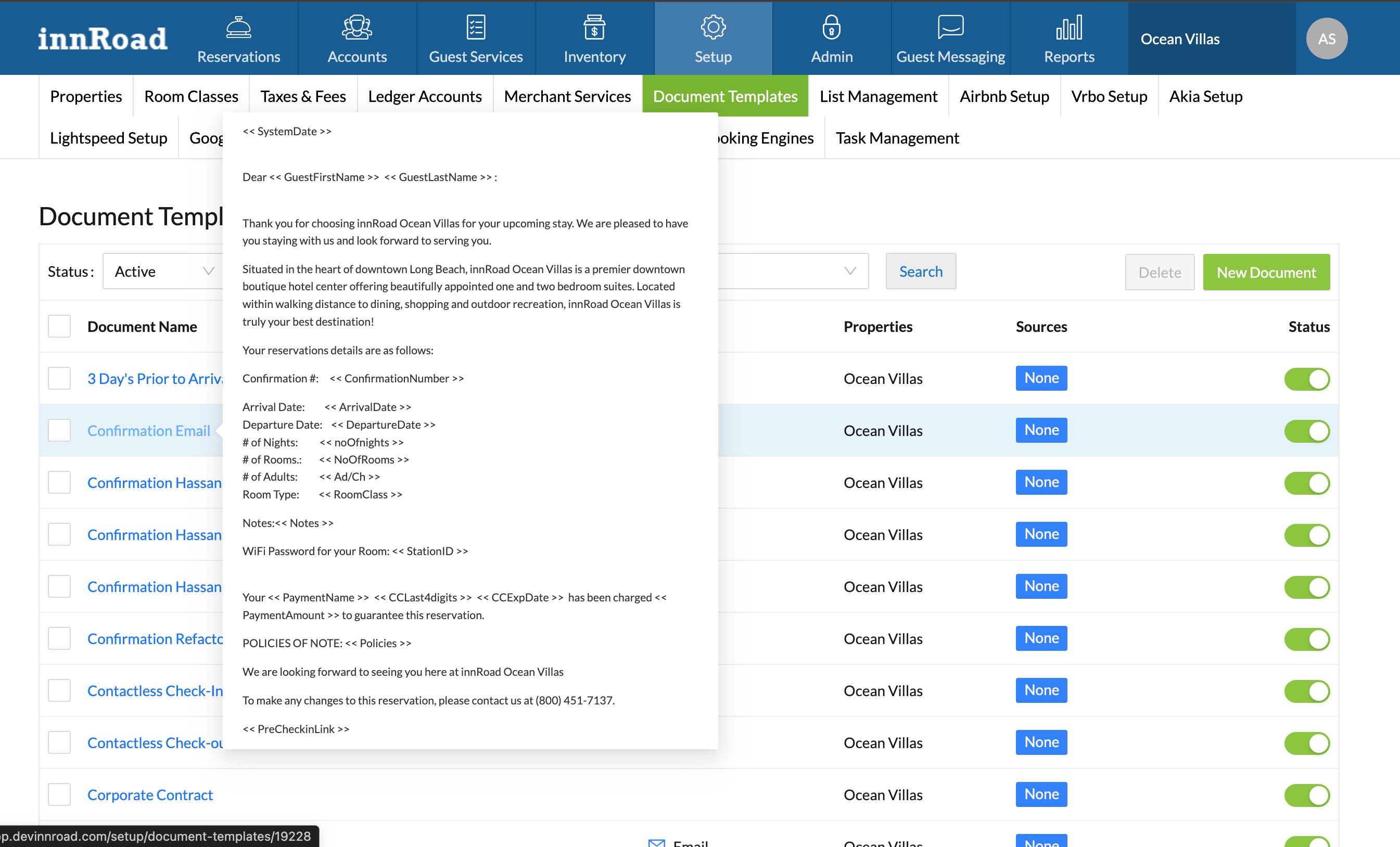 To see the list of the Document Templates in your innRoad account: