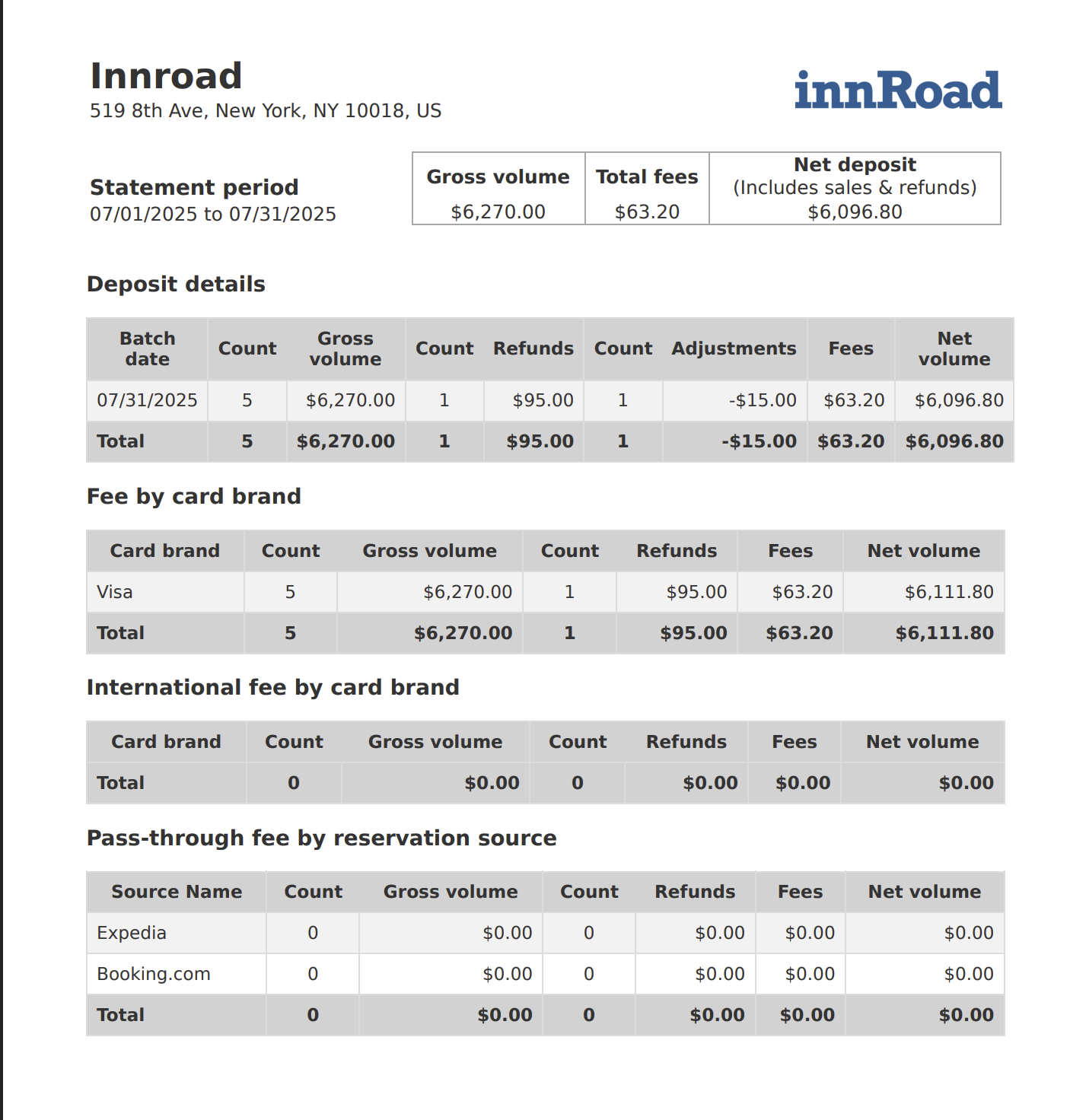 In this section, you'll see any pass-through fees associated with bookings that originate from third-party Online Travel Agencies (OTAs), such as Expedia or Booking.com.