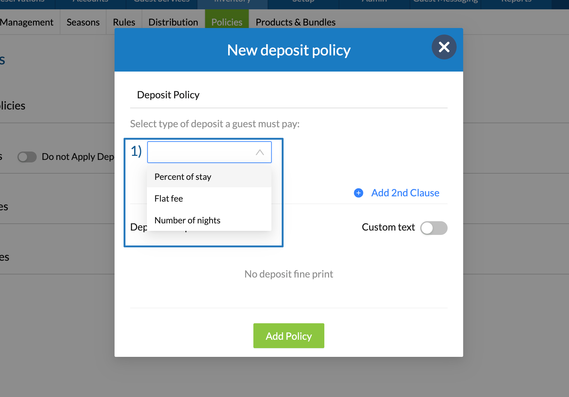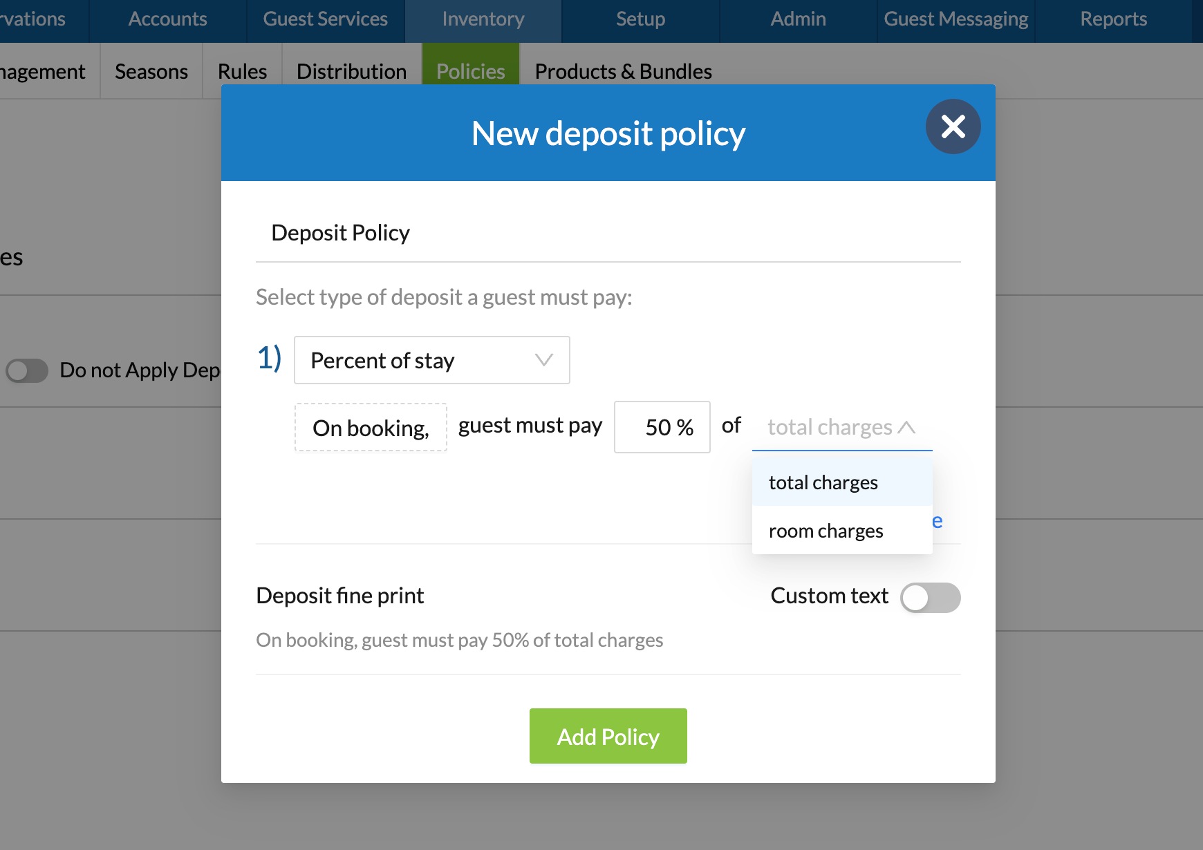 If you want to create a Deposit Policy with scheduled charges, click here.